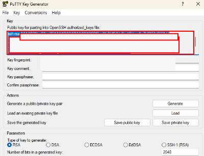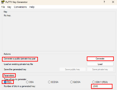 1. Putty Gen 으로 공개키와 개인키 만들기