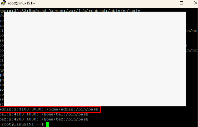 | 그룹명과 유저명이 생성이 안되어 있는 경우? # groupadd -g 3000 admins ( 그룹명 지정 ) # useradd -g admins -u 3100 admin ( 유저명 지정 ) - d /home/te1 * -d (디렉토리 지정) 명령어 안 줄 시 자동적으로 유저명으로 디렉토리가 생성이 됨 (/home/유저명:기본값) * /home 디렉토리가 아닌 다른 디렉토리로 써도 되지만 왠만하면 사용자 계정은 /home으로 만드는게 좋음 |