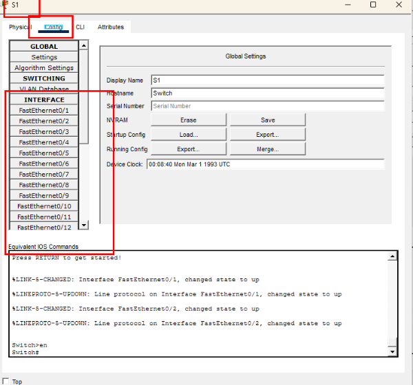 2. 위에 사진에서 스위치 아이콘 클릭 - CLI 클릭 - no 입력 - 상단 Physical 에서 스위치 껏다 켠다
