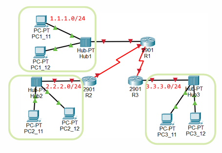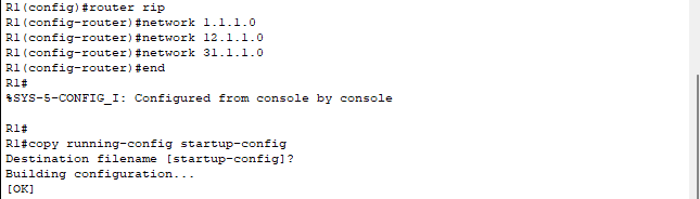 | 2. router rip network 1.1.1.0 network 12.1.1.0 network 31.1.1.0 end copy running-config startup-config (반드시 저장) 그 뒤 ex) R1 주변에 연결된 네트워크 정보만 등록 하면 된다. 그러면 R2와 R3가 각각 알아서 R1 정보를 공유한다 |