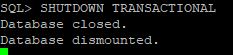 여기까지 실습은 터미널2가 꺼진 상태에서 터미널 1에서 명령어 SHUTDOWN NORMAL 과 SHUTDOWN TRANSACTIONAL이 각각 어떻게 작동하는지 보기 위함임