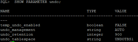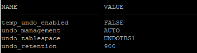 ![]() SELECT name, value FROM v$spparameter 2 WHERE name LIKE '%undo%'; - undo 관련 파라미터 설정값 조회 * value: 설정한 값 ![]() SELECT name,value FROM v$parameter 2 WHERE name LIKE '%undo%'; - 현재 실제로 적용 중인 undo 파라미터 확인 ![]() SHOW PARAMETER undo; - undo 관련 파라미터를 한번에 간단히 조회하는 명령어 ![]() ALTER SYSTEM SET undo_retention=300; - undo 데이터를 300초(5분) 동안 보관하도록 설정 변경 ![]() SELECT name, value FROM v$spparameter 2 WHERE name = 'undo_retention'; - 명령어로 수정한거 확인하기 ![]() SHOW PARAMETER undo_retention; - undo_retention 현재 설정값 확인 ![]() 접속 끊고, 다시 시작하여 retention 값 수정 됐는지 확인 한다 |