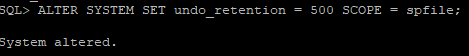 ![]() > ALTER SYSTEM SET undo_retention = 600 SCOPE = memory; - undo_retention을 600초로 변경하되 메모리에만 적용함 ![]() >SHOW PARAMETER undo_retention; - 값 확인함 ![]() SELECT name, value FROM v$parameter 2 WHERE name = 'undo_retention'; - undo_retention 현재 메모리 적용값 확인함 ![]() SELECT name, value FROM v$spparameter 2 WHERE name = 'undo_retention'; - spfile(파일)에 저장된 undo_retention 값 확인함 ![]() >SHOW PARAMETER undo - 파라미터 undo 값 확인함 ![]() > ALTER SYSTEM SET undo_retention = 500 SCOPE = spfile; - undo_retention을 500으로 spfile(파일)에만 저장 * 지금 당장 메모리엔 적용 안되고 재시작 후에 500으로 적용됨 |
