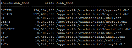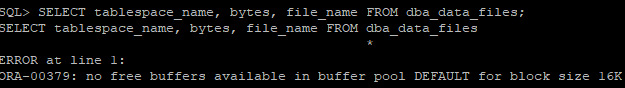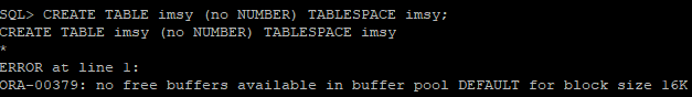 [Standard block size 확인]![]() SHOW PARAMETER db_block_size * db_block_size: Oracle DB의 기본 블록 크기(보통 8KB). DB가 데이터를 읽고 쓰는 최소 단위이며 한 번에 8KB씩 읽고 씀 [각 tablespace별 block 크기를 확인] ![]() SELECT tablespace_name, block_size FROM dba_tablespaces; [SGA 전체 메모리 크기 요약 조회] ![]() SHOW SGA; [SGA 관련 파라미터 전체 조회] ![]() SHOW PARAMETER sga_ * SGA영역은 자동으로 관리 됨 [cache 관련 크기 파라미터 전체 조회] ![]() SHOW PARAMETER cache_size * db_cache_size, buffer cache 등 조회 [SGA에서 pool별 메모리 크기 합계 조회] ![]() SELECT pool, sum(bytes) FROM v$sgastat WHERE pool IS NOT NULL GROUP BY pool; [SGA에서 buffer 관련 메모리 크기 조회 (pool 미소속)] ![]() SELECT name, bytes FROM v$sgastat WHERE name LIKE '%buffer%' AND pool IS NULL; * log_buffer=Redo log buffer 크기 [buffer pool의 블록 크기, 버퍼 수, 전체 크기 조회] ![]() SELECT name, block_size, buffers, buffers*block_size as "SIZE" FROM v$buffer_pool; * buffers*block_size → 버퍼 수 × 블록 크기 = 전체 buffer pool 크기 [에러 발생] ![]() CREATE TABLESPACE imsy DATAFILE '/app/ora19c/oradata/disk1/imsy01.dbf' SIZE 5M BLOCKSIZE 16K; * 16K 블록 크기용 buffer cache가 없어서 에러 발생, 16K 블록 크기 tablespace를 만들려면 먼저 db_16k_cache_size 파라미터로 buffer cache를 설정해야함 [16K 블록 크기용 buffer cache를 16M로 설정] ![]() ALTER SYSTEM SET db_16k_cache_size = 16M; [현재 설정된 cache 크기 파라미터 전체 조회] ![]() SHOW PARAMETER cache_size [16K 블록 크기 pool이 추가됐는지 Buffer cache 크기 확인] ![]() SELECT name, block_size, buffers, buffers*block_size as "SIZE" FROM v$buffer_pool; * Buffer cache의 크기는 parameter 보다 v$buffer_pool을 통해서 확인 하는 것이 좋다 [buffer cache 설정 후 16K 블록 크기 tablespace 생성] ![]() CREATE TABLESPACE imsy DATAFILE '/app/ora19c/oradata/disk1/imsy01.dbf' SIZE 5M BLOCKSIZE 16K; [tablespace별 블록 크기 조회] ![]() SELECT tablespace_name, block_size FROM dba_tablespaces ORDER BY 1; [tablespace별 data file 이름, 크기, 경로 조회] ![]() SELECT tablespace_name, bytes, file_name FROM dba_data_files; [캐시 사이즈 0M로 줄여보기] ![]() ALTER SYSTEM SET db_16k_cache_size = 0M; * 에러가 나지 않지만 16K block 크기를 사용하는 tablespace가 사용할 수 없게 된다 [에러 발생] ![]() SELECT tablespace_name, bytes, file_name FROM dba_data_files; * imsy tablespace가 16K 블록인데 16K buffer cache를 0으로 줄여버려서 읽을 공간이 없어서 에러가 남 [MOUNT 상태에서도 조회 가능한 tablespace별 data file 크기, 경로 조회] ![]() SELECT t.name tablespace_name, d.bytes, d.name file_name FROM v$tablespace t, v$datafile d WHERE t.ts#=d.ts# ORDER BY 1; * 장애 상황에서도 dynamyc performance view는 조회 가능 [에러 발생] ![]() CREATE TABLE imsy (no NUMBER) TABLESPACE imsy; * NUMBER 타입의 no 컬럼 생성하는 명령어 * 아까 db_16k_cache_size = 0M으로 줄여서 16K buffer cache가 없어서 imsy tablespace를 사용할 수 없는 것 [imsy 테이블 삭제] ![]() DROP TABLESPACE imsy; * 16K buffer cache를 0으로 줄이려면 imsy tablespace를 먼저 삭제해야하므로 테이블스페이스 삭제 [명령어로 확인하기] !ls /app/ora19c/oradata/disk1/ * DROP TABLESPACE만 하면 data file이 디스크에 남아 있기 때문에 파일이 남아있는지 확인해보는 절차 [imsy 파일 완전히 삭제하기] !rm /app/ora19c/oradata/disk1/imsy01.dbf [명령어로 최종 확인하기] !ls /app/ora19c/oradata/disk1 [dba_data_files 에서도 사라졌는지 확인하기] ![]() SELECT tablespace_name, bytes, file_name FROM dba_data_files; * imsy 파일이 말끔히 사라졌음을 확인함 |