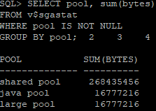 | 사용 명령어 1. database buffer cache나 redo log buffer 의 크기를 확인함 SQL> SELECT NAME, BYTES FROM V$SGASTAT 2 WHERE NAME LIKE '%buffer%' AND POOL IS NULL 2. Shared pool, large pool, java pool 의 크기를 확인함 SQL> SELECT POOL, SUM(BYTES) FROM V$SGASTAT 2 WHERE POOL IS NOT NULL 3 GROUP BY POOL; 3. 다양한 database buffer cache의 상태를 확인함 SQL> SELECT NAME, BLOCK_SIZE, BUFFERS, BUFFERS*BLOCK_SIZE AS "SIZE" 2 FROM V$BUFFER_POOL; 4. BLOCKSIZE에 지정된 크기의 block size를 갖는 tablespace를 생성함 SQL> CREATE TABLESPACE <tablespace명> 2 DATAFILE '<data file>' SIZE <크기> 3 BLOCKSIZE <크기>; |