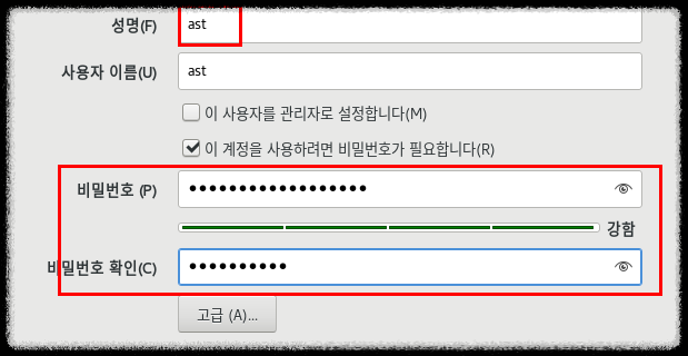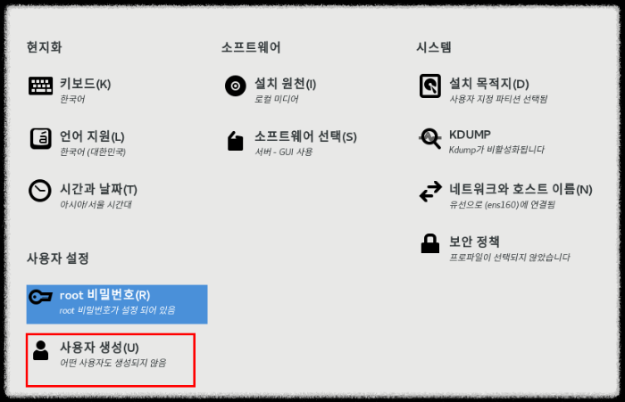 22. 사용자 설정에서 [사용자 생성] 클릭 - 성명과 비밀번호를 적고 하단에 [설치 시작]을 클릭 한다