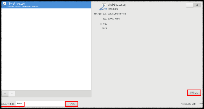 20. [네트워크와 호스트 이름] 을 클릭 - 2번째 사진에서 하단 오른쪽에 호스트 이름을 적고 [적용] 클릭 한 후 위의 사진대로 IP주소 등을 입력 한다