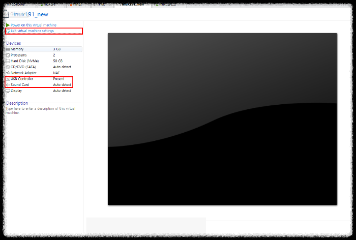 9) 이 때, Edit virtual machine settings 을 클릭해서 가상 머신에서 필요없는 USB Controller와 sound Card 를 삭제 한다