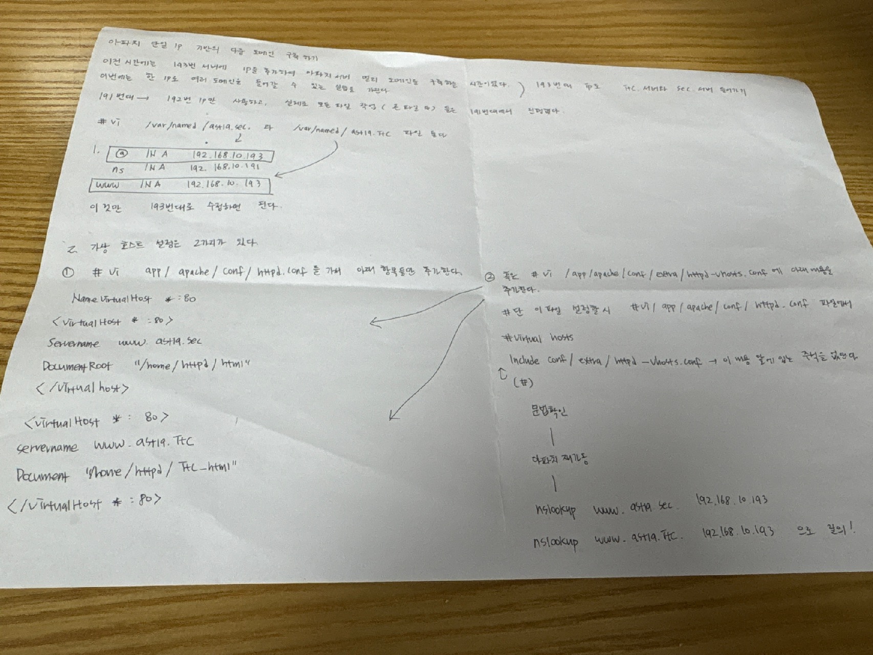 1. 캐시, authoritative, 다중도메인서버 , slave name server 읽기(복습)2. 캐시 서버를 활용한 DNS 상위-하위 도메인 위임 및 멀티 도메인 구축 실습 티스토리 내용 오타와 내용 수정3. 아파치(Apache) 단일 IP 기반의 다중 도메인(Name-based Virtual Host) 구축 하기 이전시간 복습4. NFS 기반 클라이언트 - 서버 환경 구축 하기 공책정리3시간 완