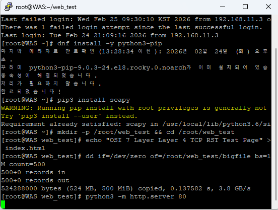세미 프로젝트 - OSI 7계층 취약점 분석: 4계층 TCP RST(Reset) Attack 공격 실증